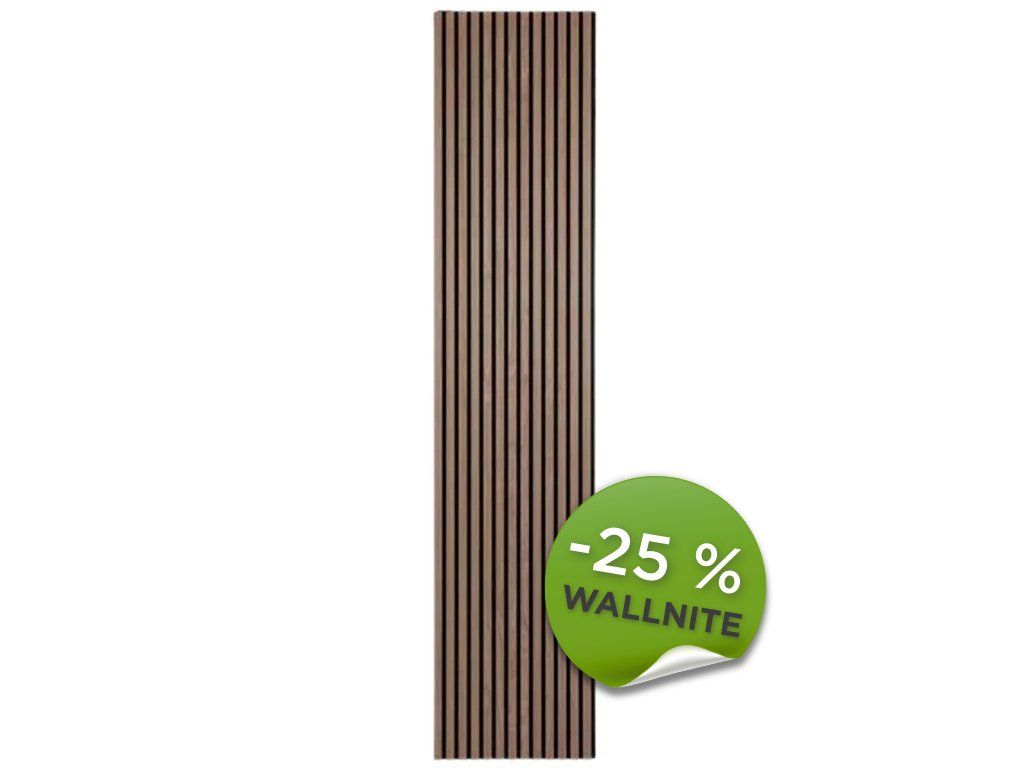 Akustični panel Wallnite Basic line crni filc Hrast 2400×520×18 – DO PRODAJE ZALIHA. Moderan panel sa crnim filcom, dekor orah.Odlično apsorbuje zvuk i poboljšava akustiku prostorije. Elegantan dizajn i jednostavna montaža.
